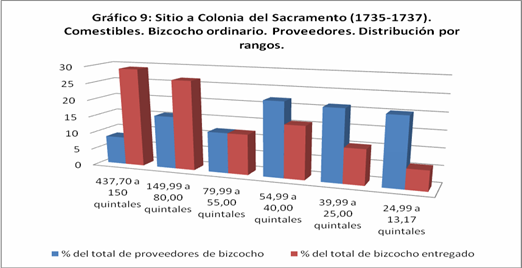 Aquí proponemos que el sitio a Colonia del Sacramento demuestra la importancia que este rubro de abastecer a tropas y/o barcos tuvo en el complejo portuario rioplatense. Presentamos los diversos análisis realizados sobre los proveedores de comestibles y en especial el aprovisionamiento de bizcochos.