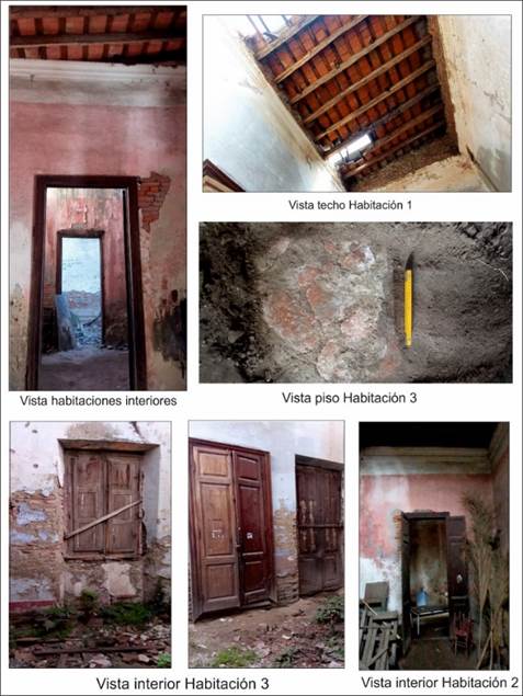El estilo neoclásico que le imprimió a la remodelación reproduce algunas de las características principales del Partenón griego con sus columnas circulares acanaladas en la galería frontal y posterior (Silva y Palacios, 2003). La vivienda cuenta con tres salas. Las dos primeras poseen 5.5 m de largo por 4,5 m de ancho. La Habitación 1 posee una puerta-ventana situada en el muro oeste que da hacia el patio interno. La Habitación 2 posee dos puertas ventanas situadas en el muro este y oeste que dan hacia las galerías que dan hacia el interior y exterior de la vivienda. La última habitación es de mayor tamaño, posee 7 m de largo por 4.5 m de ancho y dos puertas-ventanas (como en las anteriores), pero a esta se suma una ventana. La galería posterior se une en ángulo con la casa definiendo un patio interior privado (Figura 7).