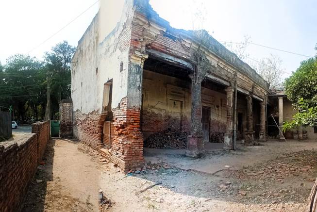 Etapa II: construcción del patio interno. No poseemos datos de las dimensiones del mismo, pero según consta en fotografías posee una extensión similar a la actual, 8 m de ancho por 16 m de largo. El piso se confeccionó con ladrillos y se delimitó por un muro de ladrillos de media vara con una puerta de acceso demarcada por dos columnas circulares (construidas con ladrillos del mismo tipo que los descriptos para la galería) que demarcaba el acceso al jardín donde se encontraban árboles frutales. Los ladrillos del piso del patio eran de ladrillos de media vara, del mismo tipo que los utilizados para los muros de la vivienda y la iglesia (Figura 4 y 8).