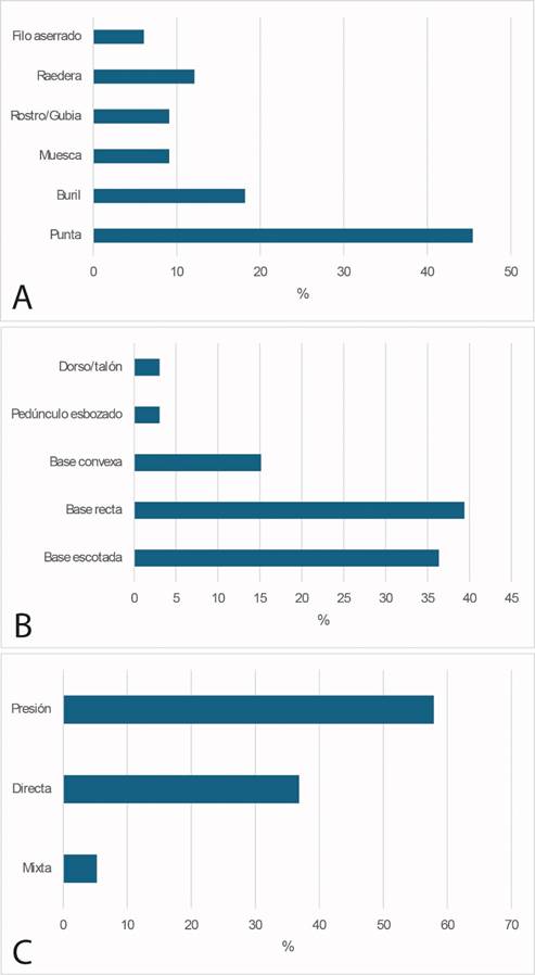 presentar los resultados obtenidos en estudios de puntas de proyectil