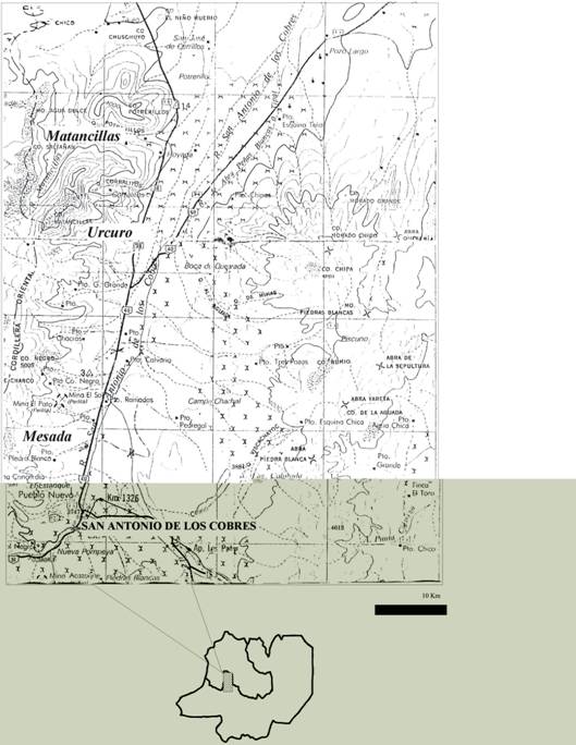 población de San Antonio de los Cobres se ubica en el extremo SE del extenso
