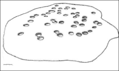 [54] Se trata de los tradicionalmente denominados morteros comunales. En este caso se utiliza el término cazoletas (empleado en la península ibérica para este tipo de talla en roca) porque no se cuenta con elementos para sustentar la funcionalidad de molienda.