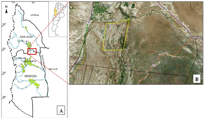 no irrigadas del noreste de la provincia de Mendoza (Argentina) haciendo foco