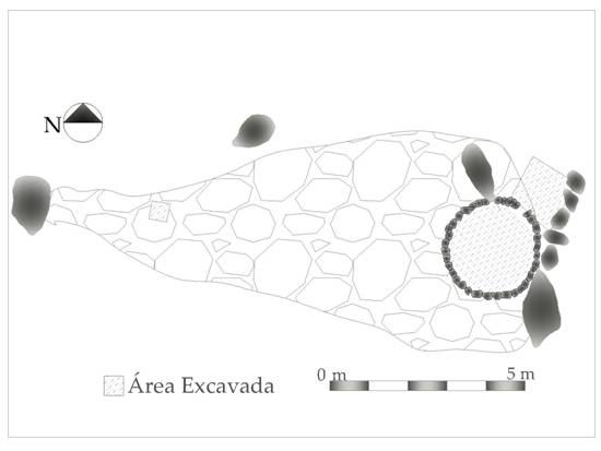 El sector central se constituyó como un ámbito altamente significativo. Se dispone constantemente como el lugar de ingreso a la unidad, a través del cual hay que transitar para acceder al resto de las habitaciones. En él se encuentran las vasijas más grandes (vinculadas, tal vez, con el almacenaje) y grandes molinos cóncavos y se hallan evidencias químicas y arqueofaunísticas de la fragmentación de carcasas de animales[28]. Pero, sobre todo, se entierran los difuntos. Este último hecho resulta notable, por cuanto los muertos no eran inhumados directamente en la tierra, sino que para tal fin se construía una estructura especial, es decir una cista, cuya base se encontraba a 1,4 m por debajo del piso de la vivienda y su tapa sobresalía unos 0,60m sobre aquél, siendo muy perceptibles para quienes ocupaban la vivienda.[29] Consecuentemente, con el paso del tiempo, este ámbito quedaba “habitado” por varias estructuras de este tipo, que literalmente unían a los vivos y a los muertos en la vida cotidiana, enfatizando los lazos afectivos que ayudaban a mantener la unidad dentro de un grupo cada vez más grande e internamente conflictivo.
