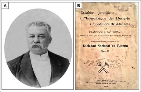 Una figura de gran relieve científico en la segunda mitad del siglo XIX fue la del ingeniero chileno Francisco J. San Román (1838-1902) (Fig. 1A). A él le debemos un valioso mapa de la Puna Argentina, entonces Puna de Atacama, publicado luego de la Guerra del Pacífico como producto de sus largos viajes a los territorios anexados por Chile a Bolivia y Perú. Tal como otras de sus publicaciones que son hoy una fuente imprescindible de consulta sobre la geología, geografía, minería y variados aspectos históricos de la región.