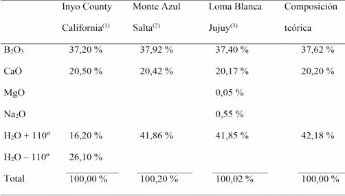 Tabla 2: Composición química de diferentes muestras de inyoíta. (1) Schaller (1916), (2) Aristarain & Erd (1971), (3) Ruiz (1989)