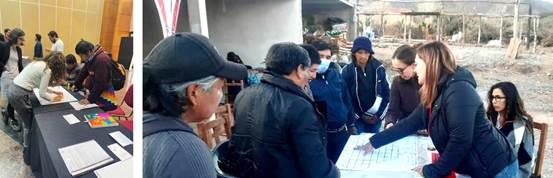 Figura 6. Realización de encuestas Q en la ciudad de Salta (izquierda) y durante visitas al territorio (derecha) con asesoramiento de personal de la Secretaría de Ambiente y Desarrollo Sustentable (SAyDS) de la provincia de Salta.